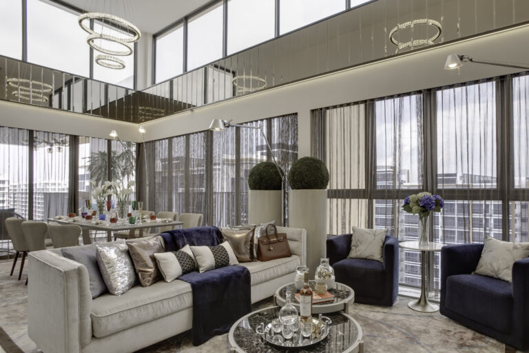 Over the years, the family has gathered a vibrant assortment of Bearbrick and Kaws figurines, eager to showcase them as accent pieces throughout their home. The firm’s mission begins with enhancing the home’s spatial flow and maximizing the floor plan while crafting an inviting atmosphere. A spacious living and dining area becomes essential for hosting friends and family over delightful feasts. With thoughtful amendments to the original layout, the firm designs an island counter and dining table for future gatherings, expanding the living area to feature an L-shaped sofa and a stunning display of Kaws figures. Adding a swimming pool with a Jacuzzi offers a refreshing morning escape. Full-height glass sliding doors flood the communal spaces with natural light while a colourful row of Bearbrick figures welcomes visitors on the second floor.